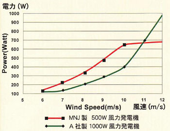小型風力発電ユニット出力特性 出力図の説明