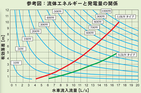 ・斜め 0.5KW、1.0KW : 水力発電機ユニットの特性曲線