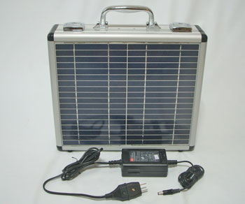 アタッシュケースを開きソーラーパネルを太陽の方向へ向けます