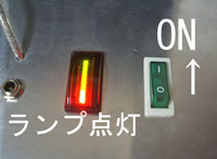 スイッチをONにするとランプが点灯し発電が開始され、内蔵バッテリーに充電されます